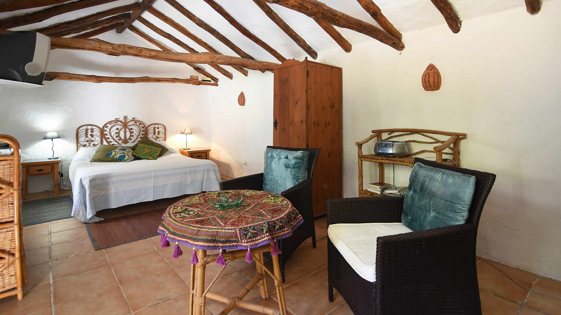 En el interior, la casa es un refugio romántico que ha sido amueblado con buen gusto por Kate, la propietaria, proporcionando un buen nivel de confort y un ambiente rústico con techos con vigas de castaño y suelos rosa de terracotta. La casa cuenta con una cama de matrimonio âking-sizeâ y bonitos muebles en una espaciosa planta abierta de sala de estar/dormitorio con una zona para sentarse equipada con TV, DVD y equipo de música. Una puerta arqueada antigua a la izquierda conduce a un cuarto de baño colorido con azulejos andaluces pintados a mano. A la derecha está la cocina equipada con 4 quemadores de gas, horno, frigorÃfico/congelador, tostador y hervidor de agua. Hay una dependencia en el exterior, pero dentro de la misma finca, con lavadora, plancha y tabla de planchar (de uso compartido con la casa ref. Casares 001). Se ofrece una cesta de bienvenida e Internet WiFi (gratuitos).