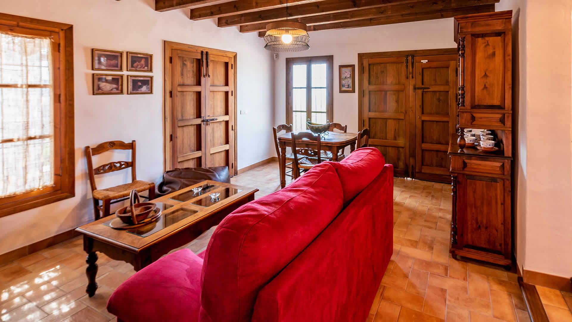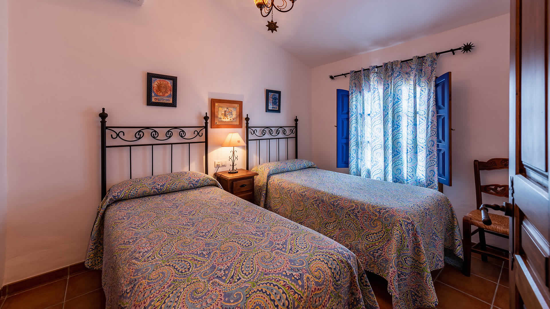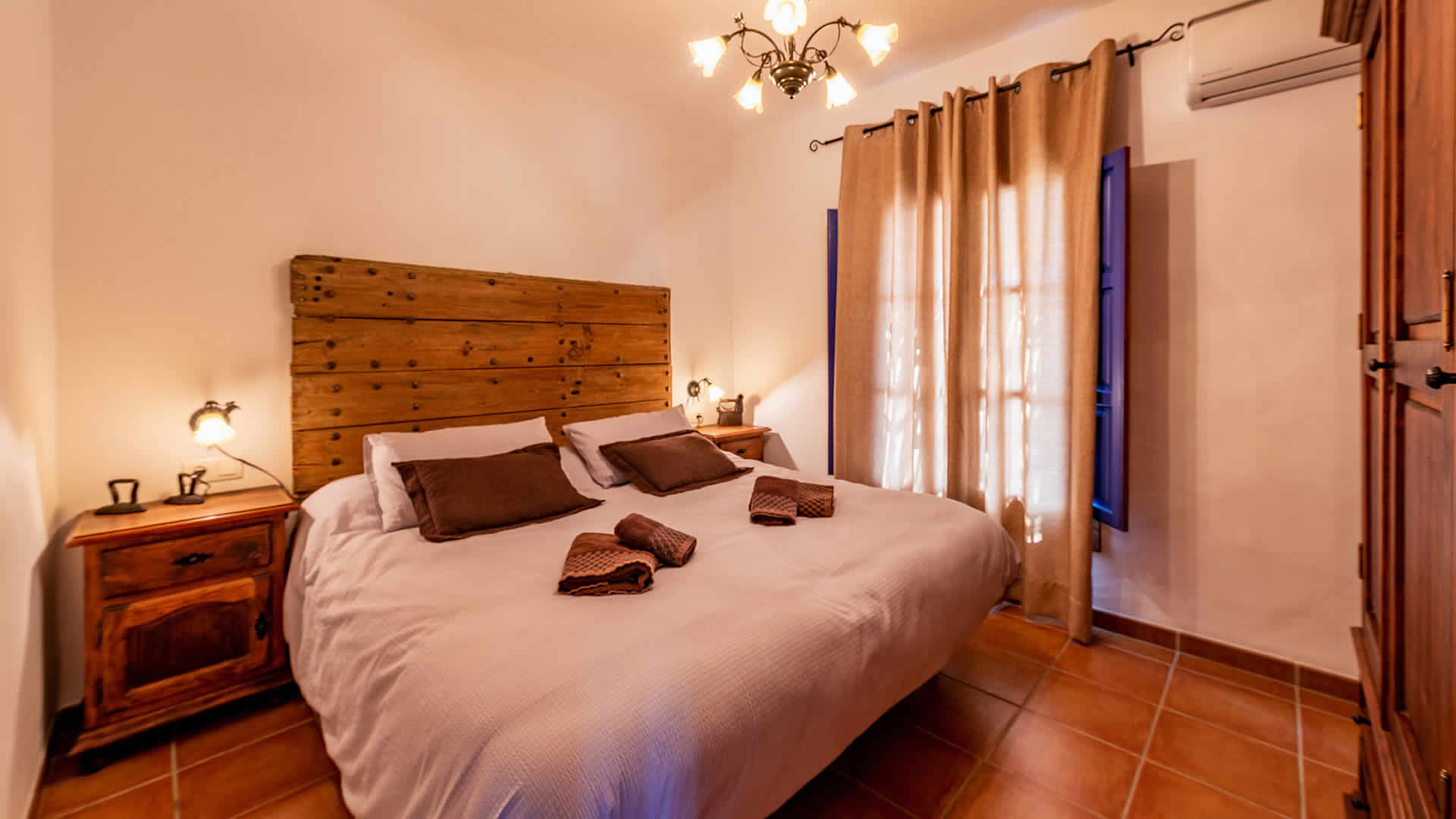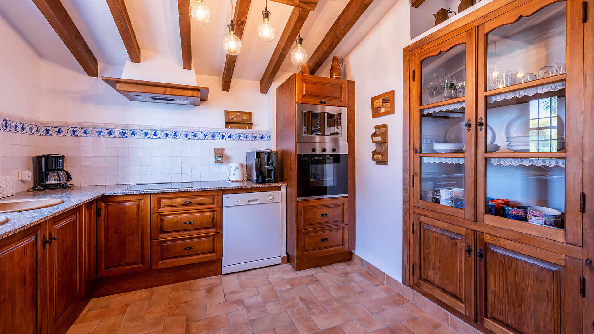Die Räume befinden sich alle zu ebener Erde, sind sehr geschmackvoll eingerichtet und in einem rustikalen andalusischen Stil gehalten. Der offene Wohnbereich geht in eine geräumige Küche über, die eine flache Stufe höher liegt. Der Wohnbereich hat ein Fernsehgerät, eine Musikanlage und einen Holzbrennofen, der im Winter für Wärme sorgt. Die Decken sind im gesamten Haus sehr hoch und vermitteln an heiÃen Sommertagen ein Gefühl von Geräumigkeit und Frische. GroÃzügige Fenster und Terrassentüren (mit eingebautem Moskitonetz) gehen auf die Veranda hinaus. Die vollständig ausgestattete Küche verfügt über ein Ceranfeld, Backofen, Mikrowelle, Geschirrspüler, Kühl-/Gefrierschrank, Wein Kühlschrank und Kaffeemachine (2 Typen). Die Waschmaschine steht in einem Wirtschaftsraum. Das Haus hat zwei Schlafzimmer (1 Zimmer mit Doppelbett, das andere mit zwei Einzelbetten) und einen Duschraum mit WC und Waschbecken.Bitte beobachten Sie:*Das Haus verfügt über WLAN Internet Anschluss (ohne Kosten).* Für einen Zuschlag von 50⬠pro Woche verfügt man auch über Klimaanlage.