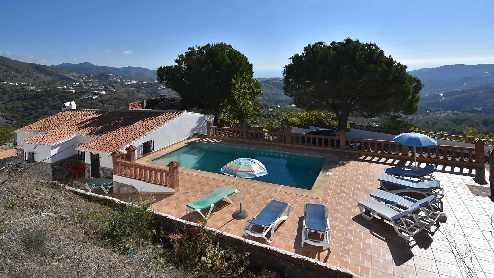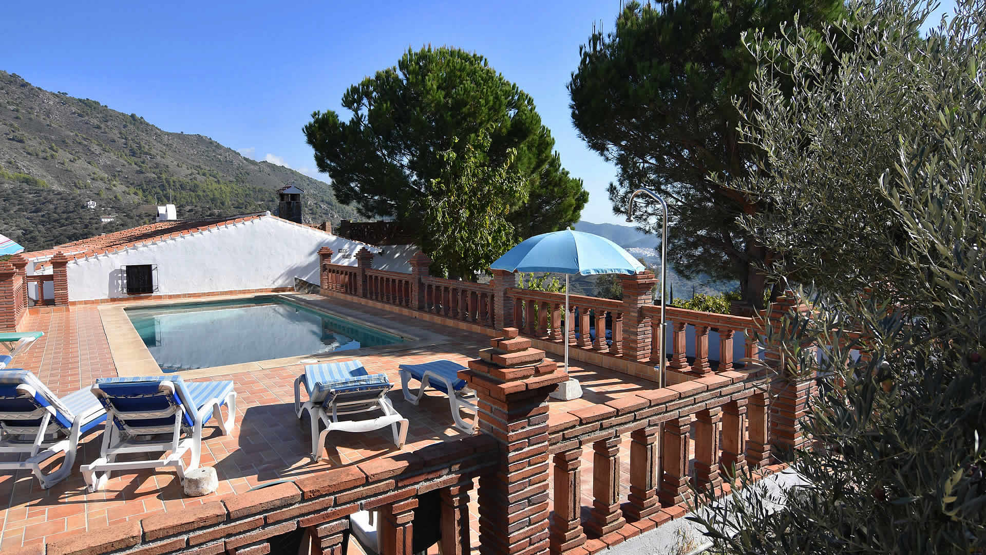 Nous avons découvert cette maison à environ 3 km au nord-ouest de Frigiliana; les vues sur la campagne environnante et la mer au loin sont à couper le souffle. Ce refuge paisible est niché sur le flanc d'une colline; on l'atteint par une route de campagne bétonnée. Frigiliana offre toutes les commodités requises pour vos vacances : supermarchés, jolis restaurants et bars de tapas. Les plages de Nerja ne sont qu'à 20 minutes en voiture et les fameux chiringuitos (restaurants sur la plage) sont à ne pas manquer si vous aimez le poisson. En avant de la maison, vous trouverez une véranda ombragée avec des meubles de patio, le site idéal pour vos dîners à l'air frais. Un jardin avec pelouse à quelques pas plus bas fera le plaisir de vos enfants. Les mordue/es du soleil seront enchantés/es par la terrasse plein sud à un niveau un peu plus élevé où se trouvent aussi l'invitante piscine (8x4 m ; 1'10m - 1'70m profond) et quelques chaises longues.