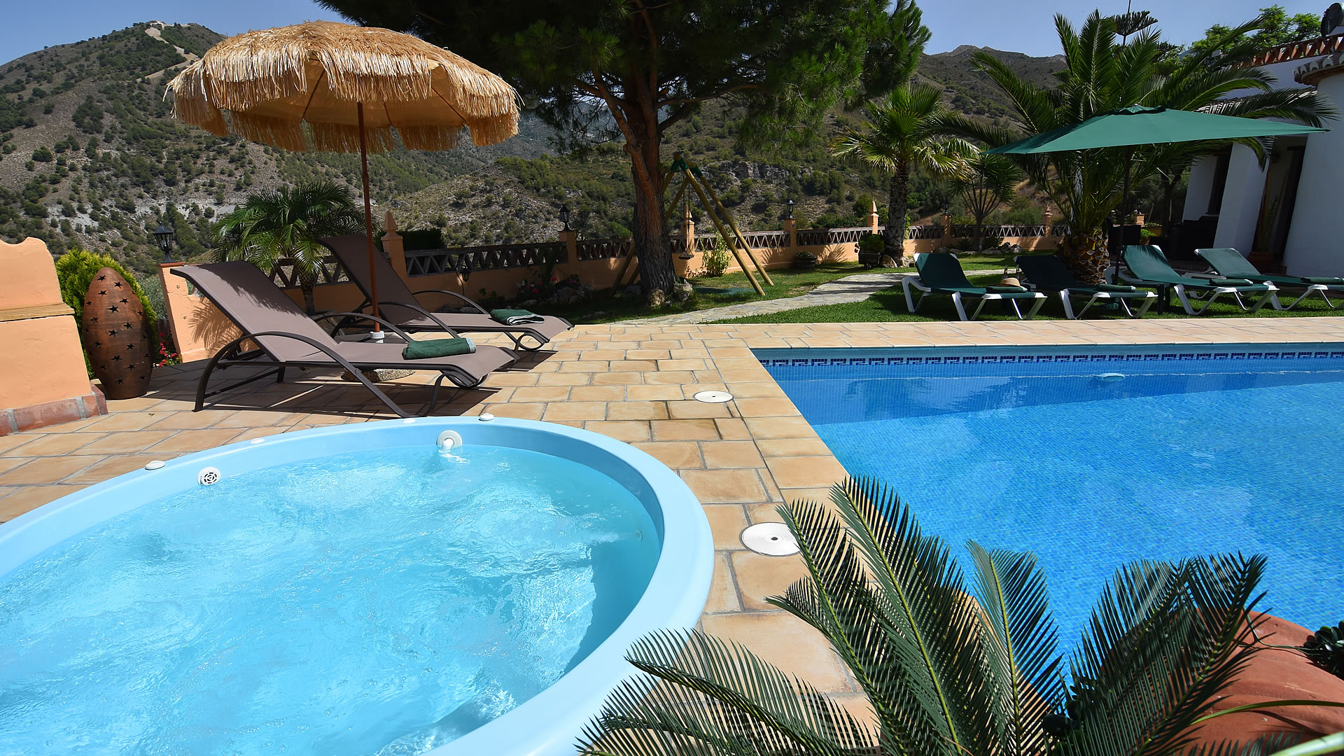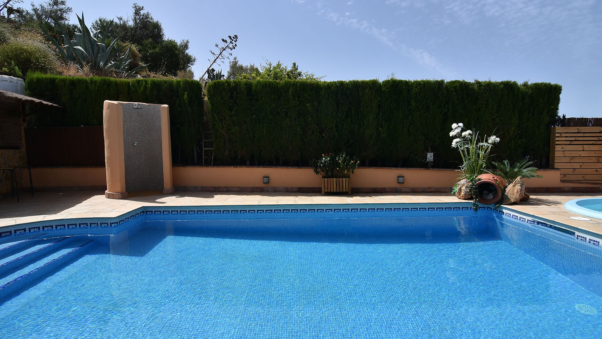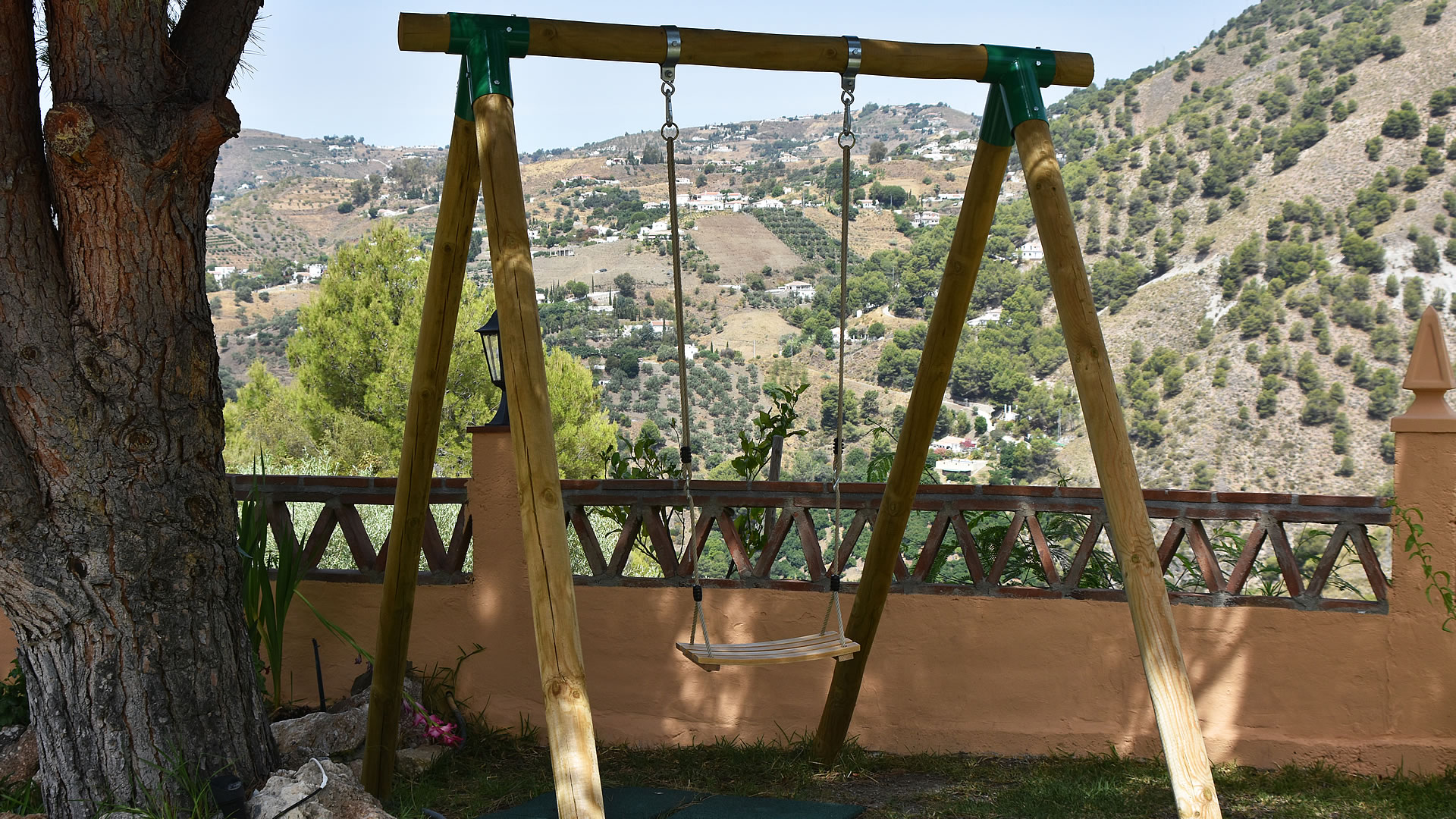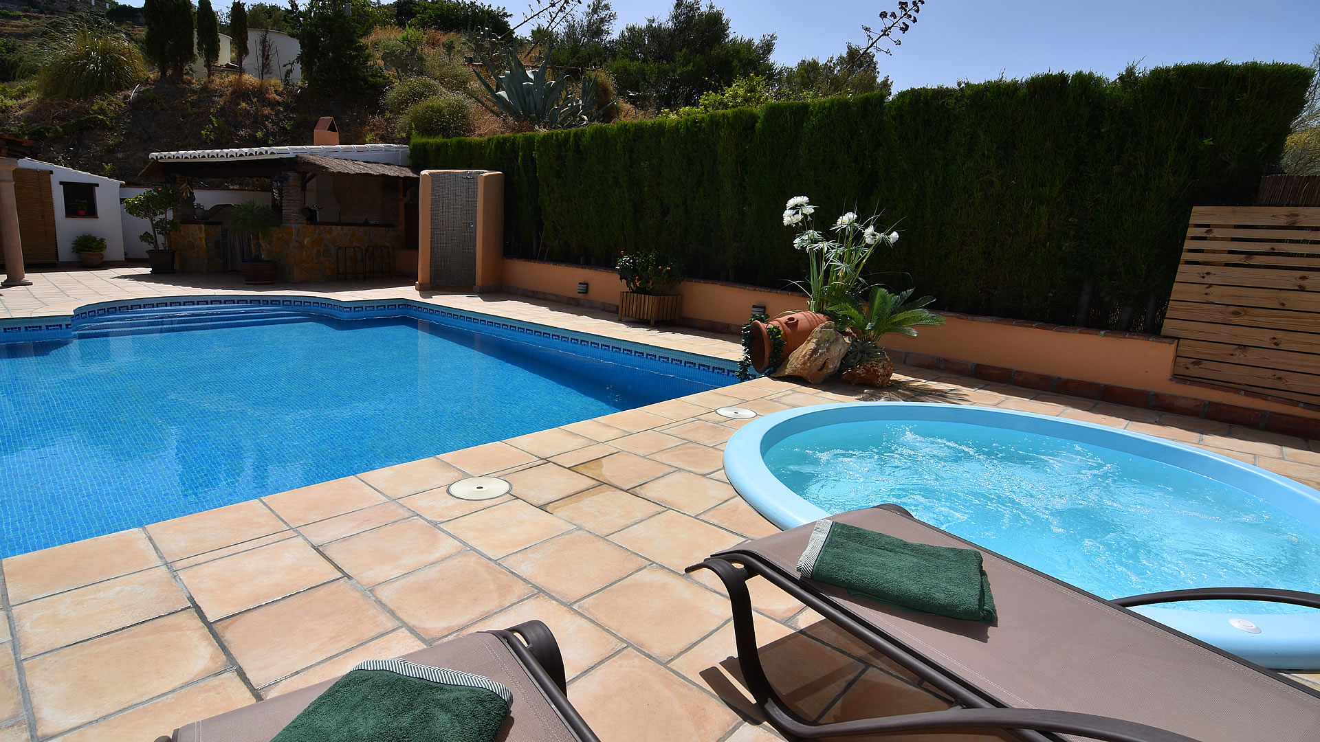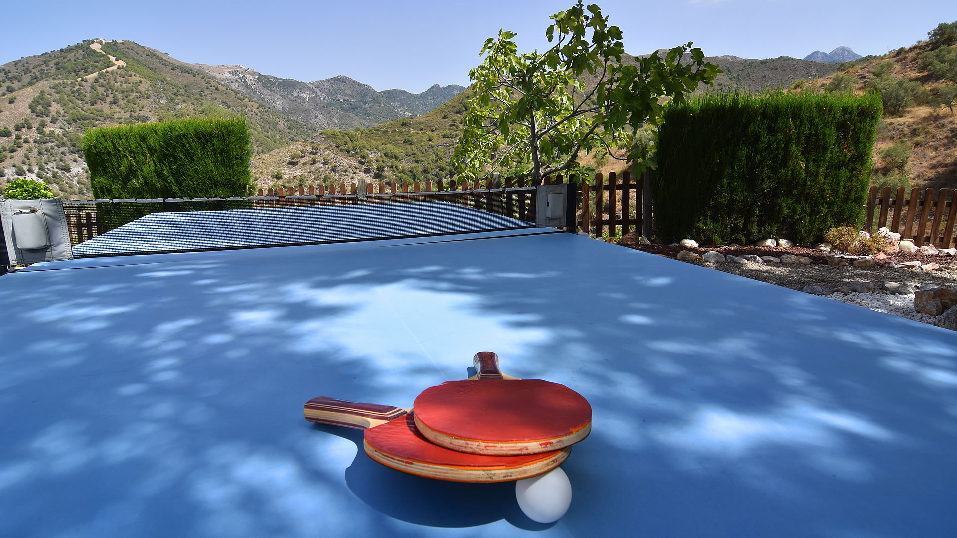 Esta preciosa casa independiente, en la que encontrará todo lo necesario para pasar unas espléndidas vacaciones de verano, se encuentra al final de un camino rural de cemento, a cinco kilómetros al noroeste de Frigiliana. El acceso a la propiedad se hace a través de una entrada privada, situada junto al tranquilo camino rural, y conduce a un jardÃn de césped y a una soleada terraza que rodea la piscina (7m x 4m; 1,20m profundidad). A la derecha podrá disfrutar de una cocina exterior a la sombra que cuenta con fregadero, frigorÃfico, barbacoa, encimera, utensilios de cocina, etc. ¡Perfecta para comidas al aire libre! A la izquierda y al otro lado de la casa encontramos una terraza con pérgola, una mesa de ping pong y más jardÃn privado. La casa está situada en la cima de un cerro, ofreciendo espectaculares vistas hacia Competa, Torrox y el campo andaluz. También es un enclave perfecto si quiere explorar AndalucÃa; los cercanos pueblos blancos o la ruta del vino dulce malagueño. Si prefiere quedarse en casa, disfrute entonces con un vaso de sangrÃa en alguna de las zonas de descanso o leyendo un libro en una tumbona junto a la piscina. El área es un paraÃso para excursionistas. Recomendamos especialmente un paseo hasta la aldea de El Acebuchal (30-40 minutos a pie), que cuenta con una interesante historia. Sus habitantes fueron obligados a abandonarla en 1949 durante el régimen franquista y reconstruida posteriormente en 1998. Si lo que prefiere es pasar un dÃa en el Mediterráneo, puede conducir hasta Nerja ( 15- 20 minutos) donde tendrá un maravilloso abanico de playas donde elegir. La casa también cuenta con un aparcamiento privado al aire libre para dos coches. El acceso por el camino rural es un tanto estrecho aunque no presenta ningún peligro.