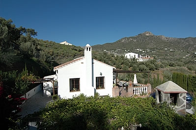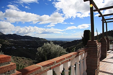 Das Häuschen hat eine einzigartige erhöhte Lage, 5,4 km von Frigiliana entfernt, einem der weißen Dörfer Andalusiens, und bietet einen herrlichen Ausblick. Von Frigiliana nimmt man eine Bergstraße in Richtung Norden zum Dorf Torrox. Nach ungefähr 3 Kilometern führt ein gewundener Asphaltweg hinunter zum Haus, das eine exklusive, sichtgeschützte Lage hat (ein Auto mit einem stärkeren Motor wird empfohlen). Das Haus hat eine charmante Sonnenterrasse und einen mit hellen Steinen eingerahmten Swimmingpool (7x3 m, 1-2 m tief). Vor dem Haus bietet eine Veranda einen umwerfenden Blicke auf das Meer. Ein gemauerter Grillplatz und Sonnenliegen sind vorhanden.