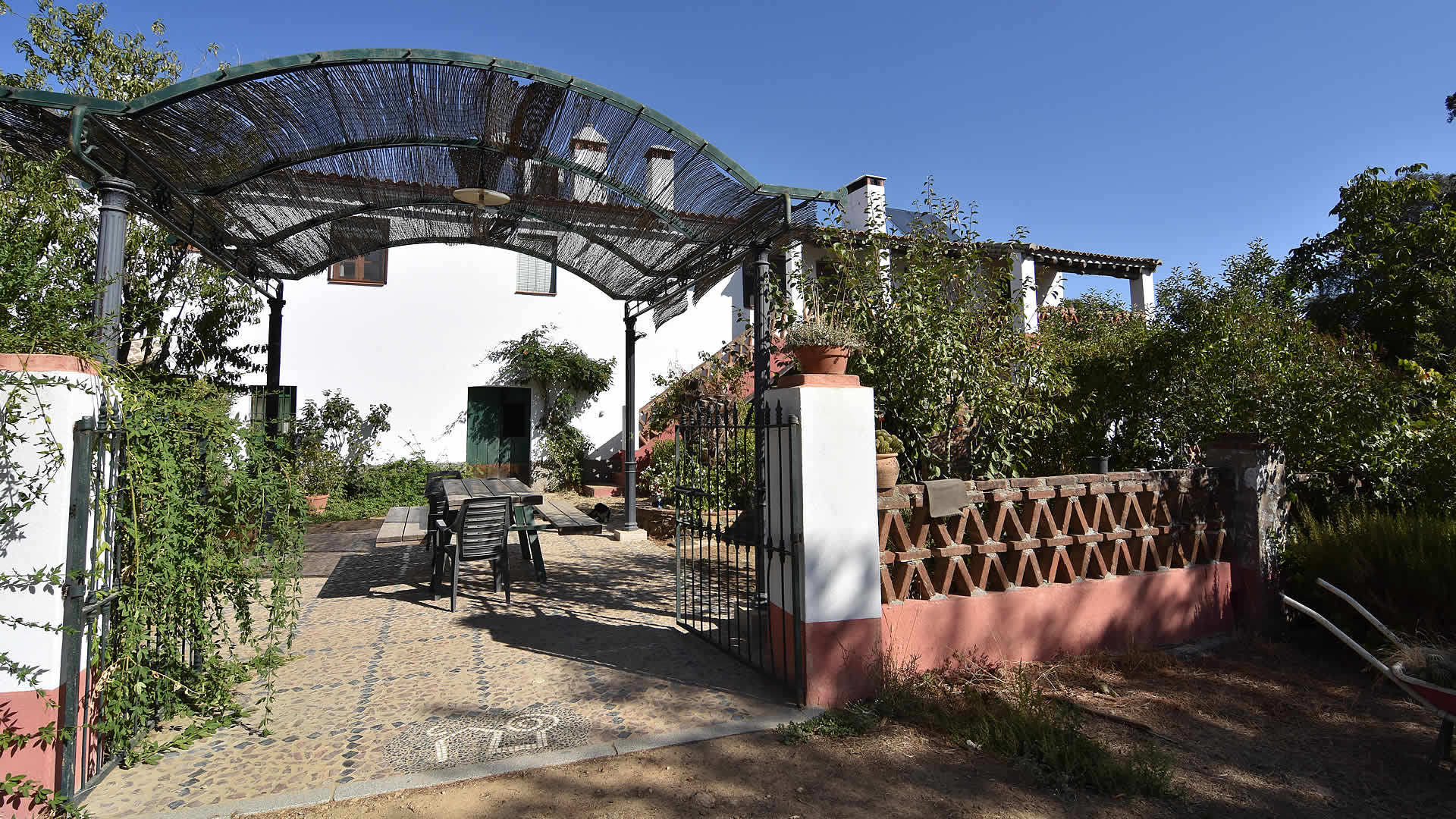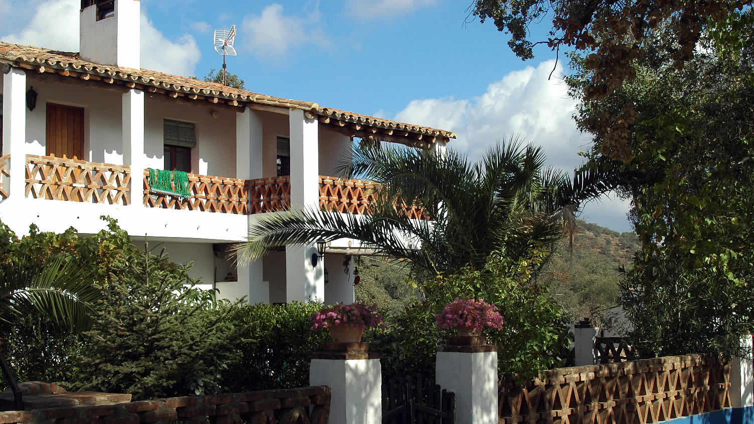 Het huis hoort bij een succesvolle ecologische boerenhoeve én bij het huis van Armando en Lola, de eigenaren van deze boerderij. Het biedt u een unieke kans om het leven op een karakteristiek Andalusische boerderij te ervaren, temidden van rust en natuur. Het zwembad (11 x 5m) is voor gezamenlijk gebruik met appartement Aracena 003 en de eigenaren. Wanneer de kinderen van Armando en Lola niet naar school gaan, spelen ze rondom de boerderij en het zwembad wat het voor kinderen gemakkelijk maakt om nieuwe vrienden te ontmoeten. Dit huis is bij uitstek geschikt voor gezinnen met kinderen, met veel dieren en een heerlijk zwembad waar uw kinderen zeker snel nieuwe vriendjes zullen maken. De meeste van onze gasten brengen de avond hier door op het schitterende terras op de eerste verdieping, wilt u echter liever uit om tapas te eten dan is het dorp El Repilado slechts 5 minuten rijden. In dit dorp vindt u alles voor uw dagelijkse boodschappen, terwijl de grotere plaats Cortegena op 10km. afstand ligt. Vergeet niet om de uitgelezen gastronomische streekgerechten uit te proberen, met name de 'Jamon de Pata Negra', beroemd in de omgeving, evenals andere produkten afkomstig van het vlees van het Iberische zwarte varken. Armando en Lola zijn geboren en getogen in deze streek en kunnen u voorzien van alle mogelijke informatie wat betreft wandelen, paardrijden of fietstochten. Gasten die geïnteresseerd zijn kunnen hier kennismaken met het ecologische boerenbedrijf: Armando fokt Iberische varkens, maakt zelf ambachtelijke 'Jamon' en zorgt voor de ecologische groententuin, terwijl zijn vrouw Lola met zorg produkten als geitenkaas bereidt. Daarnaast beheert ze de receptie en zal zij u begeleiden naar het huis.