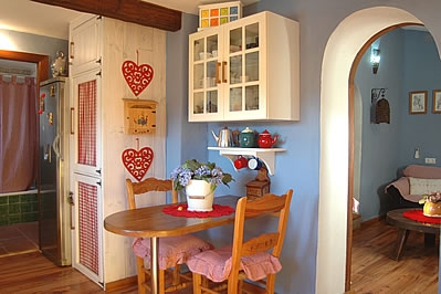 De accommodatie is in traditioneel Andalusische stijl gebouwd: dikke muren, balkenplafonds en houten vloeren. U vindt een gezellige zitkamer met twee banken, een houtkachel, airconditioning, sateliettelevisie en een Dvd-speler. De ruime keuken is prima uitgerust met een 4-pits inductie kookplaat, magnetron, koelkast, diepvries, vaatwasser en een ontbijthoek. De keuken loopt over in de aanbouw met eetkamer. Via de hal vol met traditionele ornamenten bereikt u de charmante tweepersoonsslaapkamer en de badkamer met douche boven het bad en een toilet. Op de eerste verdieping leidt een ruime gang, in gebruik als een tweede slaapkamer met stapelbed, naar een derde romantisch ingerichte slaapkamer met een tweepersoonsbed en een panoramisch raam met uniek uitzicht over de tuin en over het landschap. Deze slaapkamer is voorzien van een flatscreen televisie en airconditioning. De vierde slaapkamer ligt op de begane grond en heeft een eigen ingang. Deze slaapkamer met eigen doucheruimte en toilet is smaakvol ingericht en ademt een warme atmosfeer.