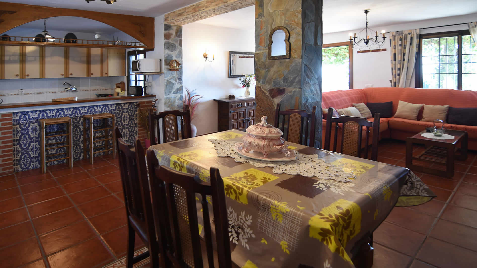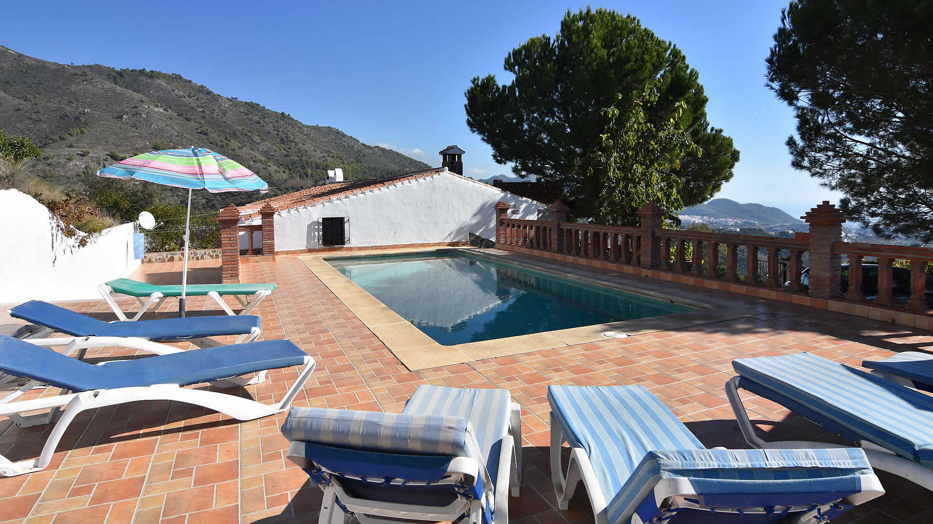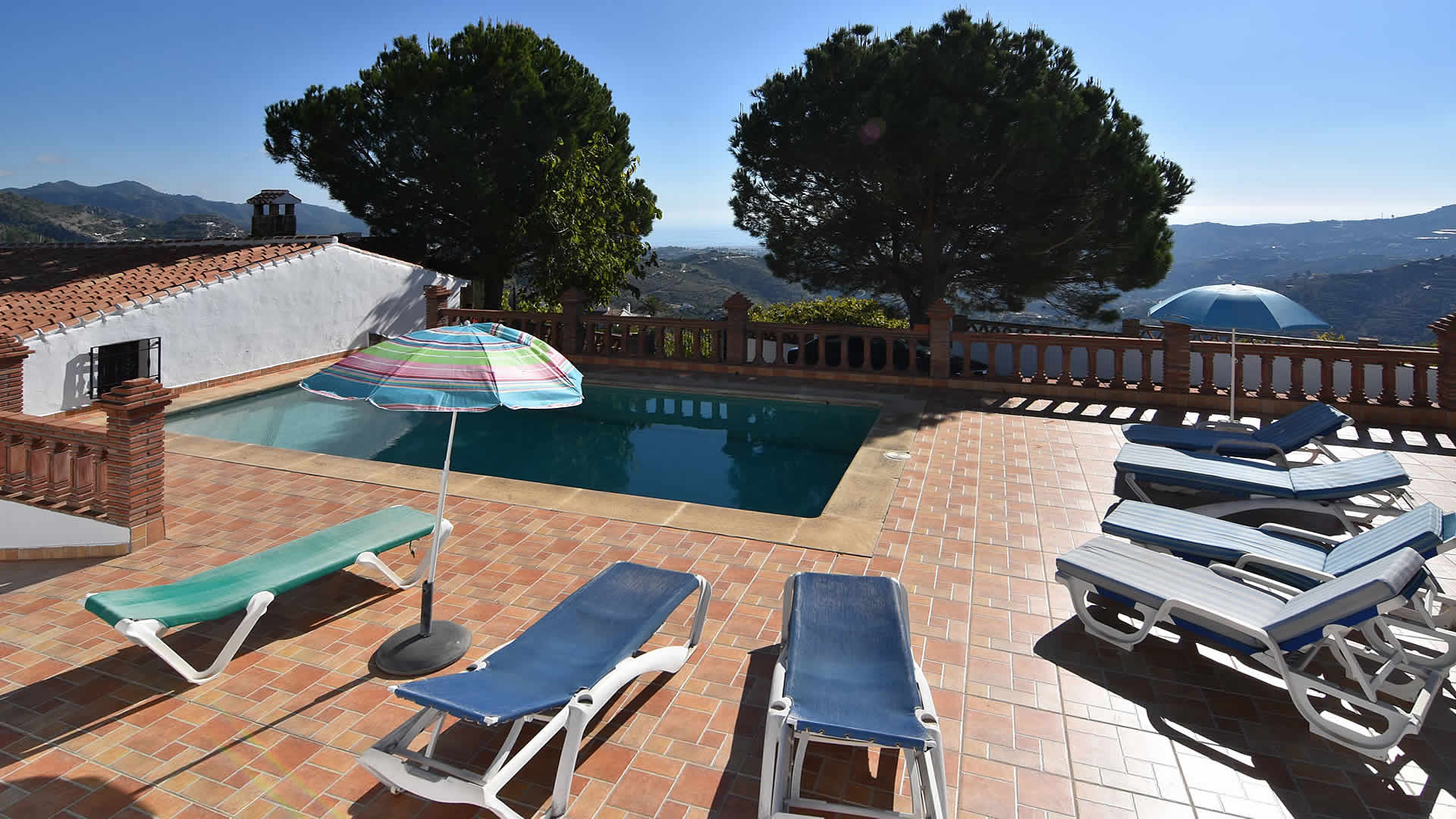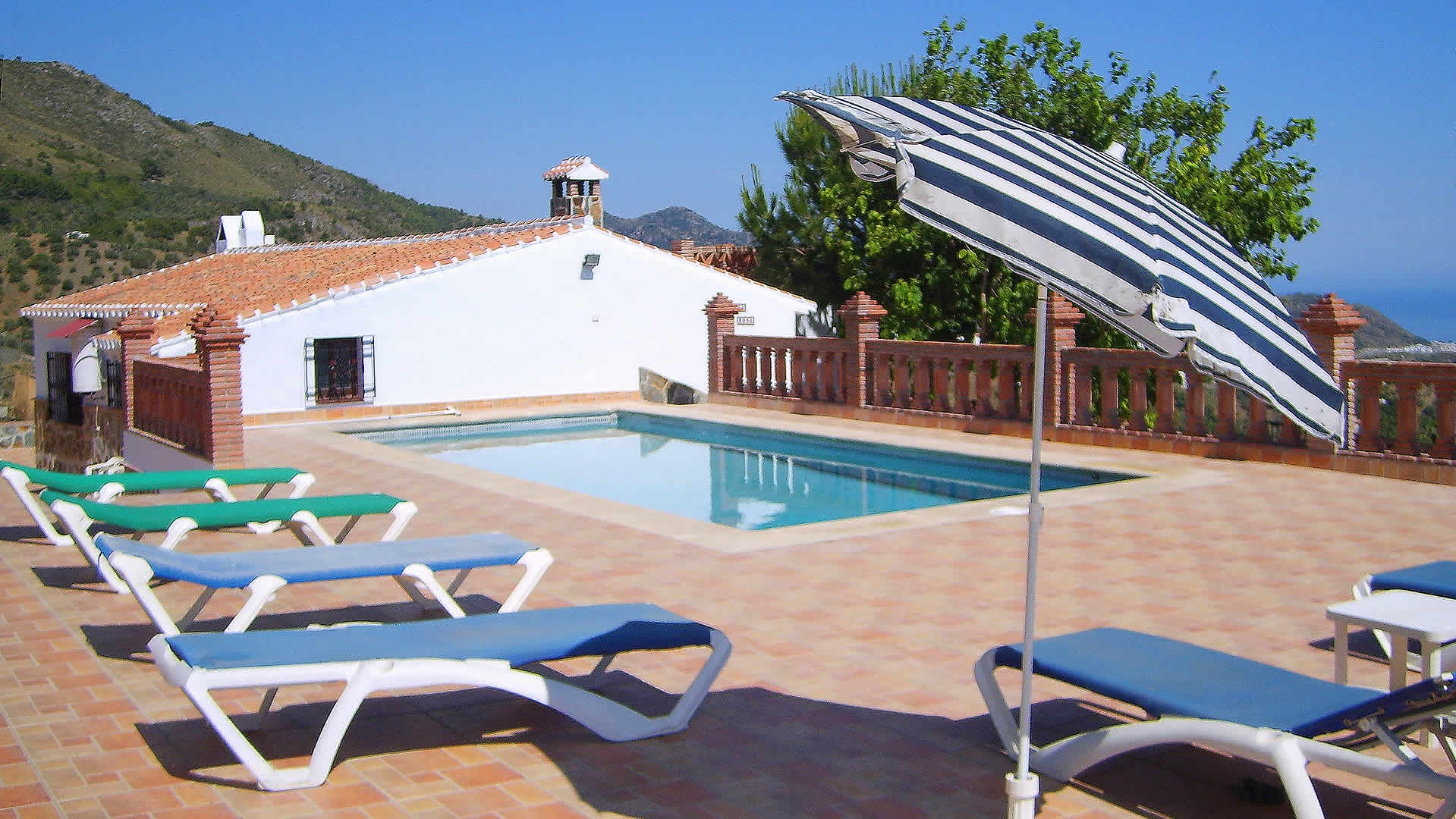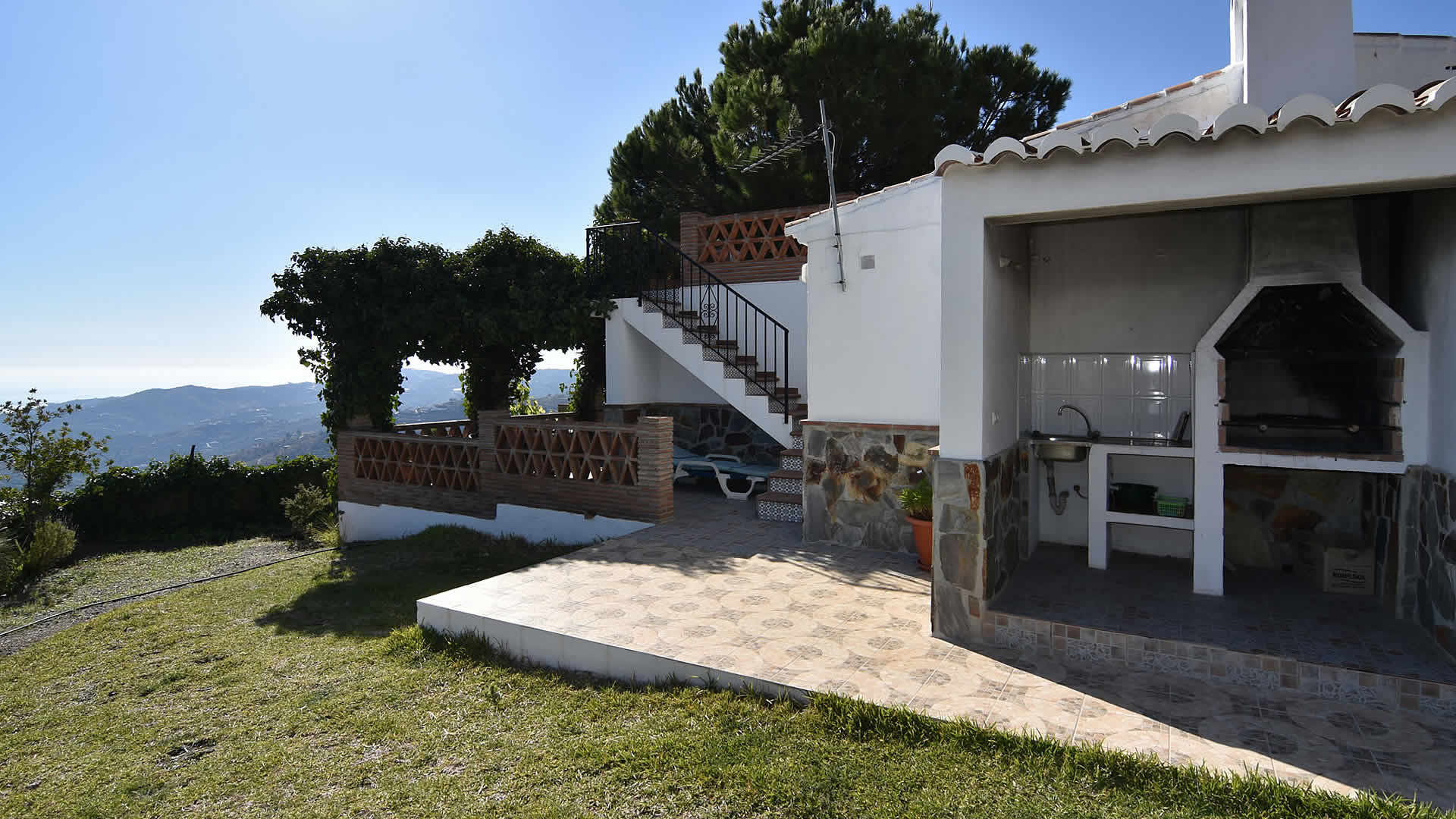 Nous avons découvert cette maison à environ 3 km au nord-ouest de Frigiliana; les vues sur la campagne environnante et la mer au loin sont à couper le souffle. Ce refuge paisible est niché sur le flanc d'une colline; on l'atteint par une route de campagne bétonnée. Frigiliana offre toutes les commodités requises pour vos vacances : supermarchés, jolis restaurants et bars de tapas. Les plages de Nerja ne sont qu'à 20 minutes en voiture et les fameux chiringuitos (restaurants sur la plage) sont à ne pas manquer si vous aimez le poisson. En avant de la maison, vous trouverez une véranda ombragée avec des meubles de patio, le site idéal pour vos dîners à l'air frais. Un jardin avec pelouse à quelques pas plus bas fera le plaisir de vos enfants. Les mordue/es du soleil seront enchantés/es par la terrasse plein sud à un niveau un peu plus élevé où se trouvent aussi l'invitante piscine (8x4 m ; 1'10m - 1'70m profond) et quelques chaises longues.