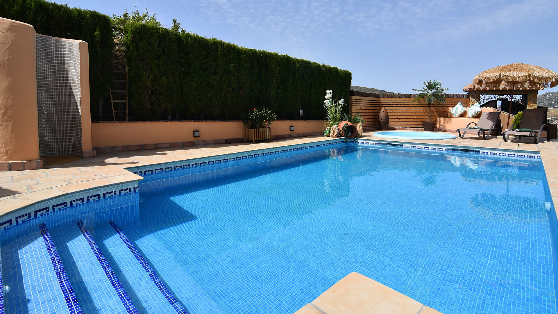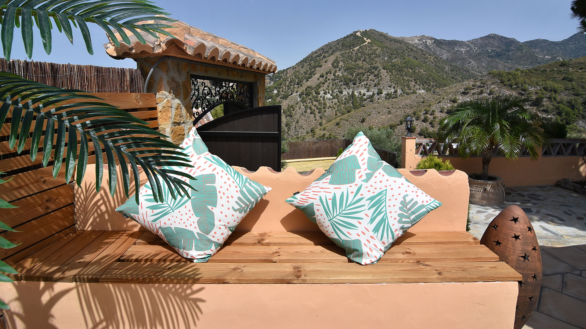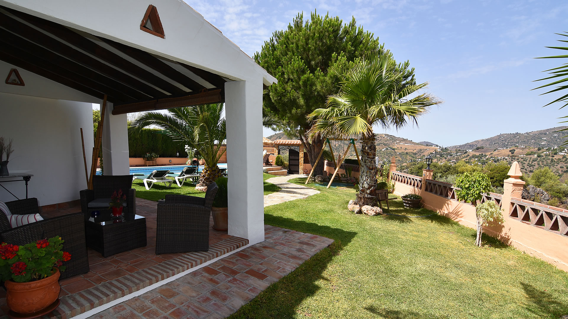 Esta preciosa casa independiente, en la que encontrará todo lo necesario para pasar unas espléndidas vacaciones de verano, se encuentra al final de un camino rural de cemento, a cinco kilómetros al noroeste de Frigiliana. El acceso a la propiedad se hace a través de una entrada privada, situada junto al tranquilo camino rural, y conduce a un jardÃn de césped y a una soleada terraza que rodea la piscina (7m x 4m; 1,20m profundidad). A la derecha podrá disfrutar de una cocina exterior a la sombra que cuenta con fregadero, frigorÃfico, barbacoa, encimera, utensilios de cocina, etc. ¡Perfecta para comidas al aire libre! A la izquierda y al otro lado de la casa encontramos una terraza con pérgola, una mesa de ping pong y más jardÃn privado. La casa está situada en la cima de un cerro, ofreciendo espectaculares vistas hacia Competa, Torrox y el campo andaluz. También es un enclave perfecto si quiere explorar AndalucÃa; los cercanos pueblos blancos o la ruta del vino dulce malagueño. Si prefiere quedarse en casa, disfrute entonces con un vaso de sangrÃa en alguna de las zonas de descanso o leyendo un libro en una tumbona junto a la piscina. El área es un paraÃso para excursionistas. Recomendamos especialmente un paseo hasta la aldea de El Acebuchal (30-40 minutos a pie), que cuenta con una interesante historia. Sus habitantes fueron obligados a abandonarla en 1949 durante el régimen franquista y reconstruida posteriormente en 1998. Si lo que prefiere es pasar un dÃa en el Mediterráneo, puede conducir hasta Nerja ( 15- 20 minutos) donde tendrá un maravilloso abanico de playas donde elegir. La casa también cuenta con un aparcamiento privado al aire libre para dos coches. El acceso por el camino rural es un tanto estrecho aunque no presenta ningún peligro.