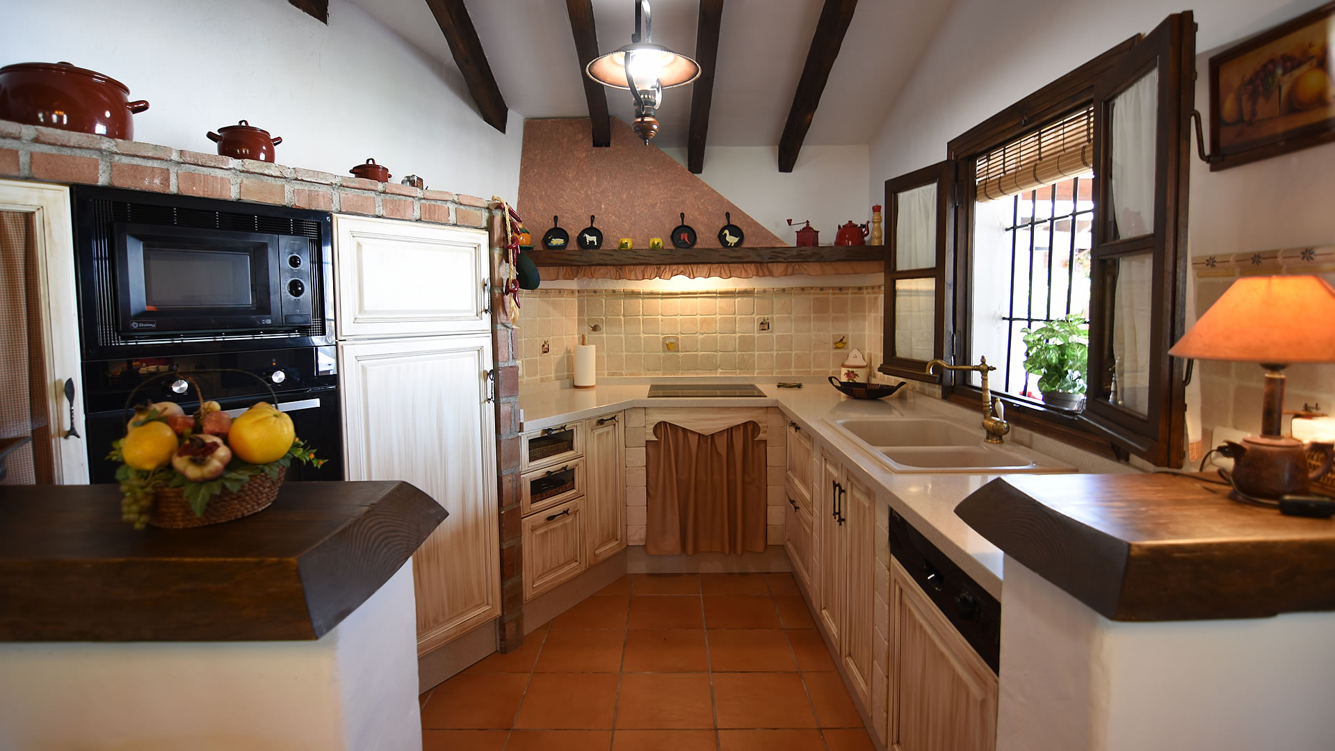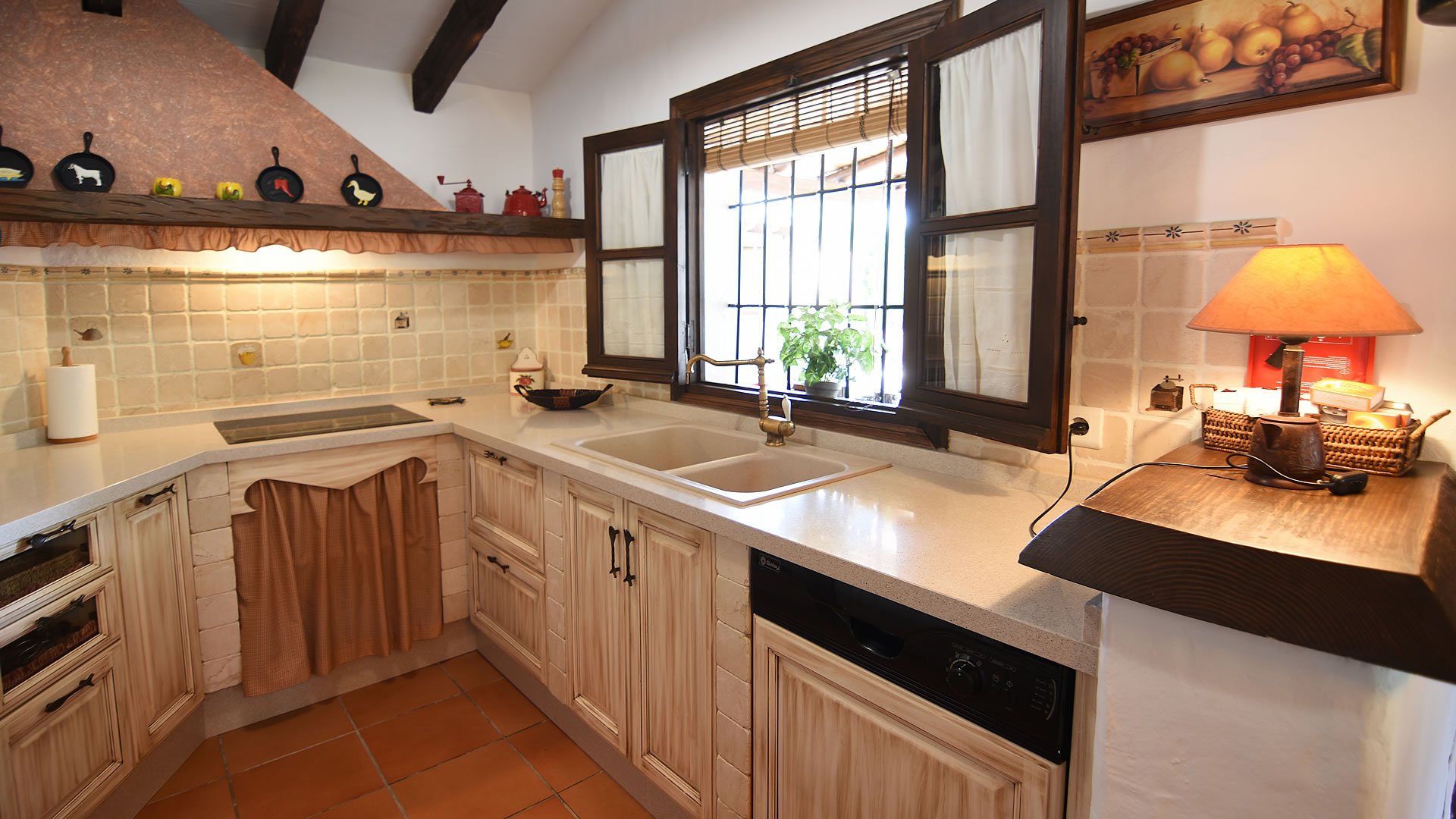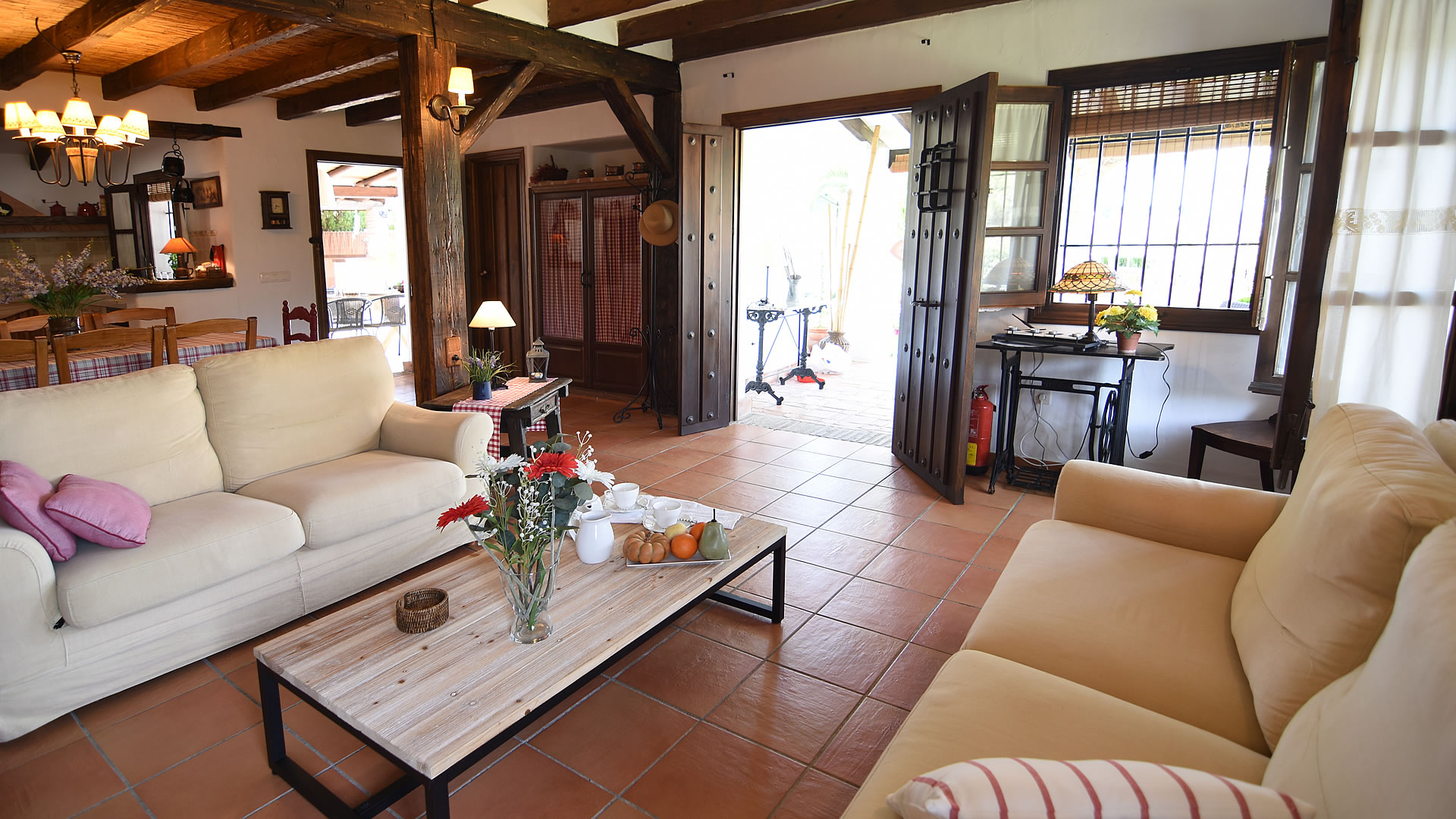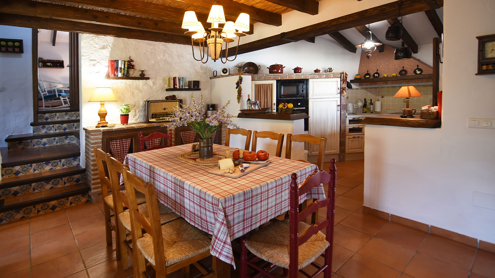 Con tan solo entrar en la residencia, se sentirá como en casa. El propietario ha decorado el alojamiento con un gusto excelente, al tÃpico estilo rústico español, empleando azulejos de la zona y vigas de madera a lo largo de sus techos. La puerta principal nos conduce a un espacioso salón-comedor. En el área del salón encontramos una estufa de leña, dos sofás de tres plazas uno frente al otro, televisión plana con conexión vÃa satélite y equipo de música. La zona de comedor está convenientemente situada cerca de la cocina y ofrece un acogedor rincón para seis personas. La cocina, aunque en estilo rústico, es moderna y está completamente equipada con vitrocerámica, horno, microondas, frigorÃfico combi, lavadora y lavaplatos. Hay tres dormitorios (Dos dobles y uno triple con camas individuales), cuarto de baño completo y baño con ducha. Hay un aparato de aire acondicionado (frÃo / calor) en la sala de estar y otro en el rellano que acondiciona los 3 dormitorios si se dejan las puertas abiertas.Notas:- Los precios son válidos para una ocupación de 6 personas. Se aplica un suplemento de 15 ⬠por noche para la 7ª persona. - Dispone de conexión a Internet WiFi (gratuito).