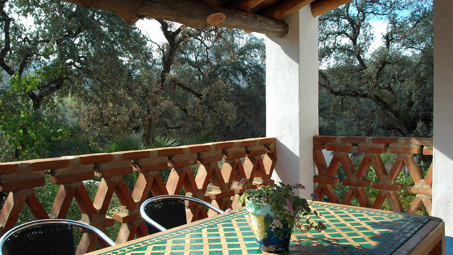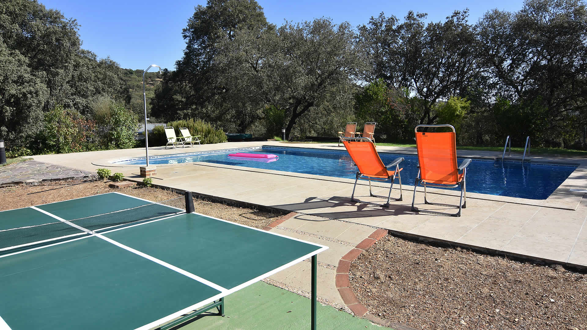Het huis hoort bij een succesvolle ecologische boerenhoeve én bij het huis van Armando en Lola, de eigenaren van deze boerderij. Het biedt u een unieke kans om het leven op een karakteristiek Andalusische boerderij te ervaren, temidden van rust en natuur. Het zwembad (11 x 5m) is voor gezamenlijk gebruik met appartement Aracena 003 en de eigenaren. Wanneer de kinderen van Armando en Lola niet naar school gaan, spelen ze rondom de boerderij en het zwembad wat het voor kinderen gemakkelijk maakt om nieuwe vrienden te ontmoeten. Dit huis is bij uitstek geschikt voor gezinnen met kinderen, met veel dieren en een heerlijk zwembad waar uw kinderen zeker snel nieuwe vriendjes zullen maken. De meeste van onze gasten brengen de avond hier door op het schitterende terras op de eerste verdieping, wilt u echter liever uit om tapas te eten dan is het dorp El Repilado slechts 5 minuten rijden. In dit dorp vindt u alles voor uw dagelijkse boodschappen, terwijl de grotere plaats Cortegena op 10km. afstand ligt. Vergeet niet om de uitgelezen gastronomische streekgerechten uit te proberen, met name de 'Jamon de Pata Negra', beroemd in de omgeving, evenals andere produkten afkomstig van het vlees van het Iberische zwarte varken. Armando en Lola zijn geboren en getogen in deze streek en kunnen u voorzien van alle mogelijke informatie wat betreft wandelen, paardrijden of fietstochten. Gasten die geïnteresseerd zijn kunnen hier kennismaken met het ecologische boerenbedrijf: Armando fokt Iberische varkens, maakt zelf ambachtelijke 'Jamon' en zorgt voor de ecologische groententuin, terwijl zijn vrouw Lola met zorg produkten als geitenkaas bereidt. Daarnaast beheert ze de receptie en zal zij u begeleiden naar het huis.