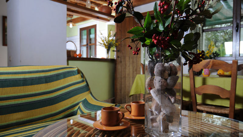 Het huis is gelegen op de eerste verdieping en is bereikbaar via een buitentrap. Comfortabel en rustiek ingericht in de typische stijl van de streek, straalt het een huiselijke sfeer uit. De woon/eetkamer is voorzien van een open haard, bank en televisie. De open keuken is uitgerust met een 4-pits gasstel, magnetron, wasmachine en de gebruikelijke keukenbenodigdheden. In het huis bevinden zich twee tweepersoons slaapkamers en twee kamers met twee aparte bedden. Er zijn twee badkamers voor gezamenlijk gebruik en het huis is voorzien van CV. (voor het gebruik van verwarming wordt een klein bedrag in rekening gebracht, zie onder).